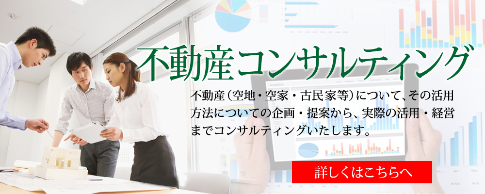 不動産(空地・空家・古民家等)について、その活用方法についての企画・提案から、実際の活用・経営までコンサルティングいたします。